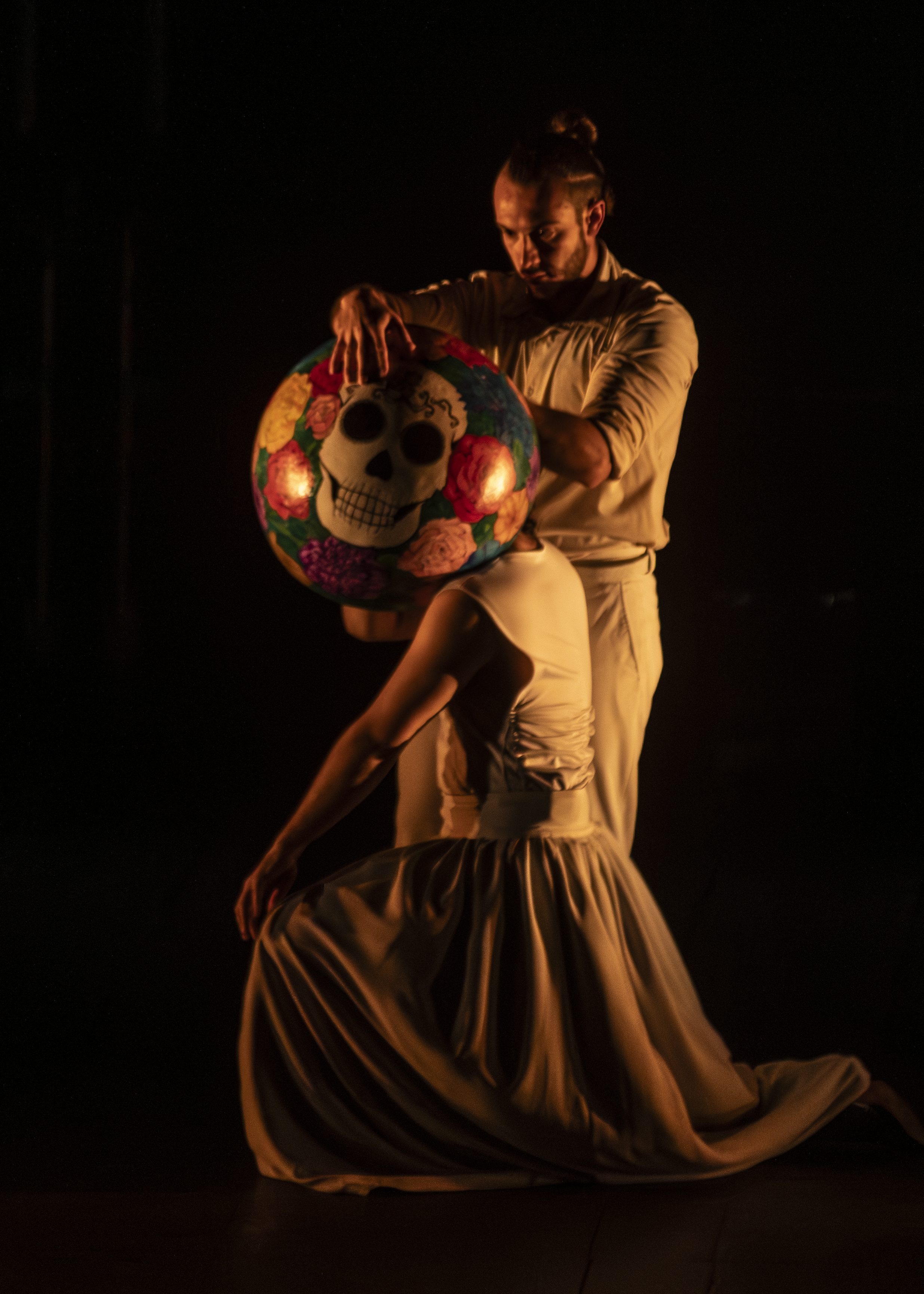 El espectáculo se abre con una evocación en México, donde el Día de los Muertos celebra su vida a través del color, la memoria y la presencia de los ausentes. Acto seguido, la escena nos lleva a España, donde el cante, la oración y la música -en forma de soleá- expresan el dolor crudo e íntimo.
